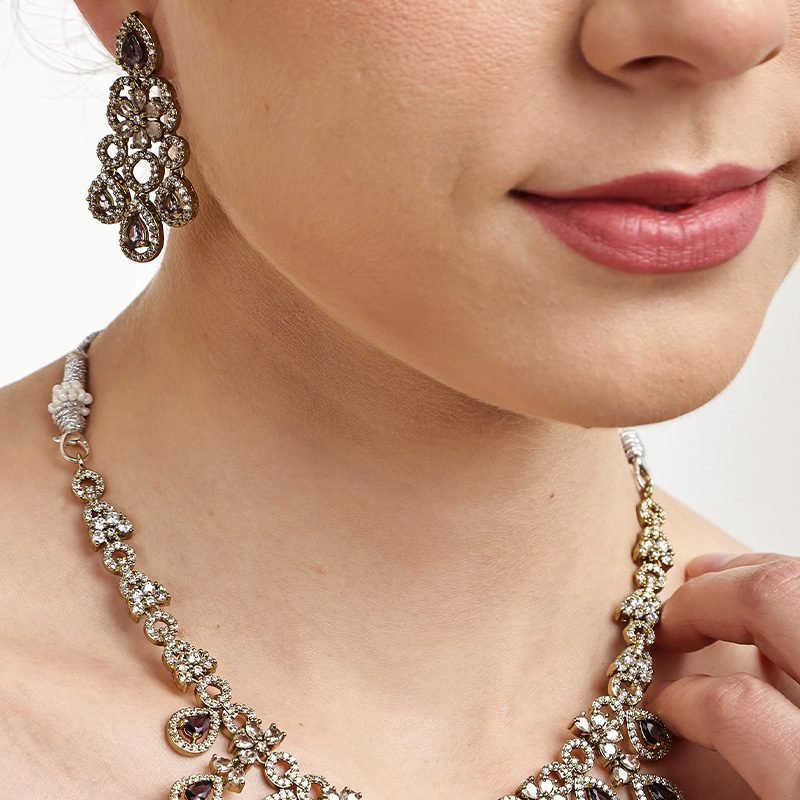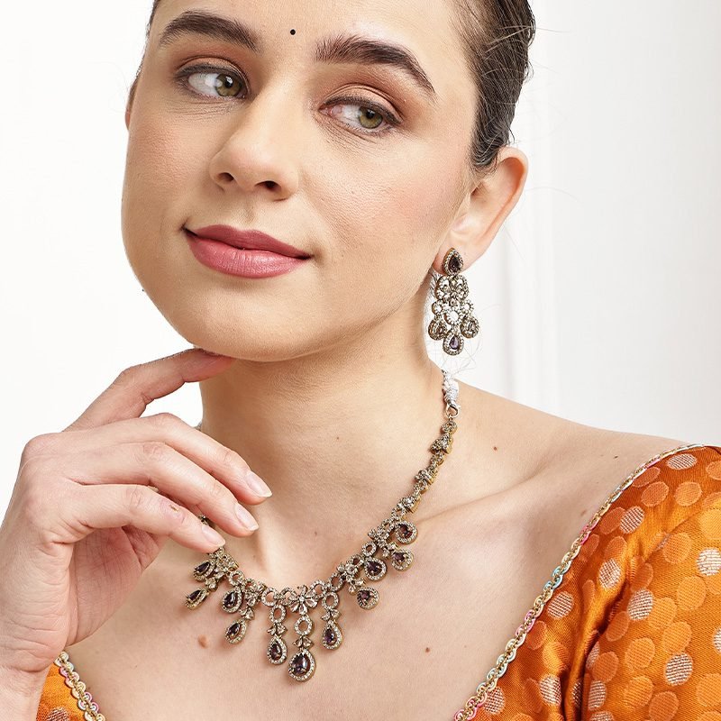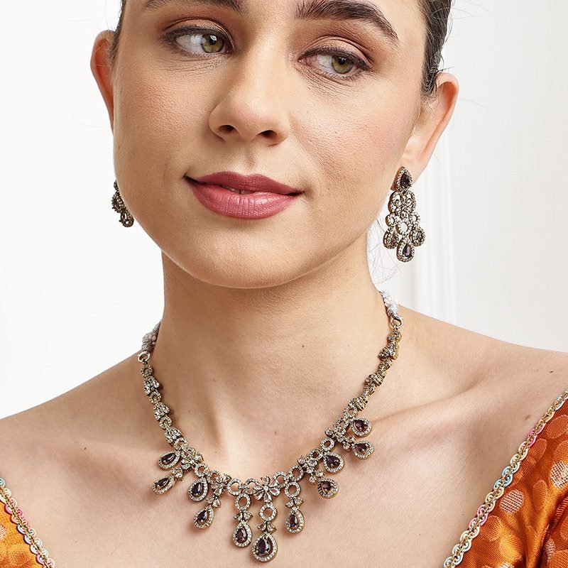 Antique Gold Marquise Zircon Statement Necklace & Drop Earring Set Original price was: ₹2,950.00.Current price is: ₹1,475.00.