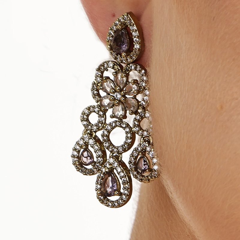 American Diamond Emerald & Victorian Filigree Chandelier Jewelry Set