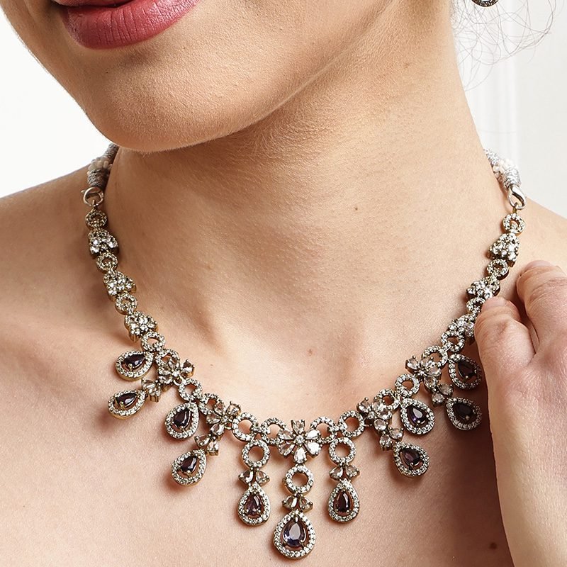 Victorian-Style American Diamond Gold-Tone Emerald & Polki Drop Necklace Set Original price was: ₹2,950.00.Current price is: ₹1,475.00.