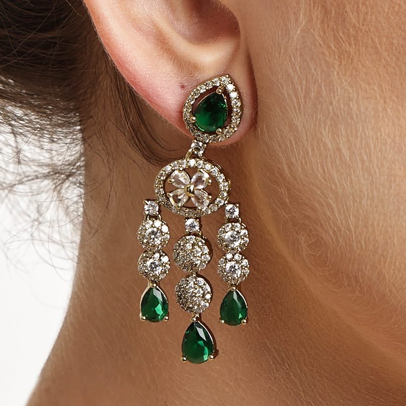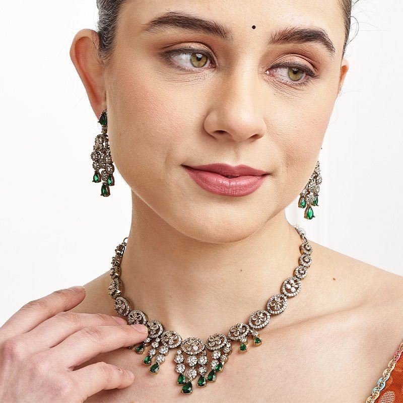 American Diamond Emerald & Victorian Filigree Chandelier Jewelry Set Original price was: ₹2,950.00.Current price is: ₹1,475.00.