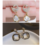 Elegant Gold Plated Earrings Combo Set | Swan Design Crystal Drop & Square Rhinestone Dangle Earrings for Women