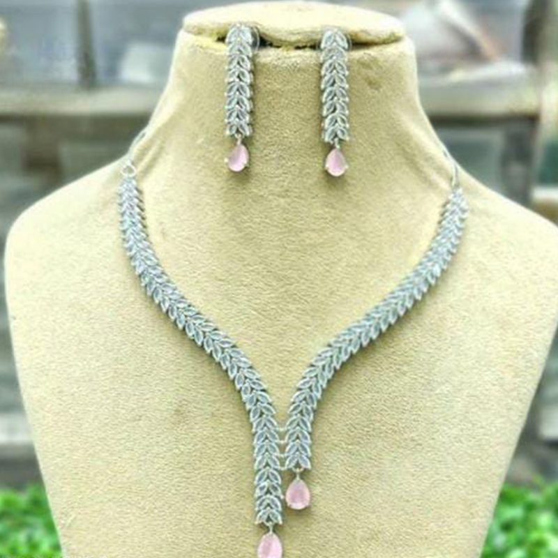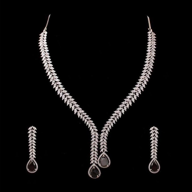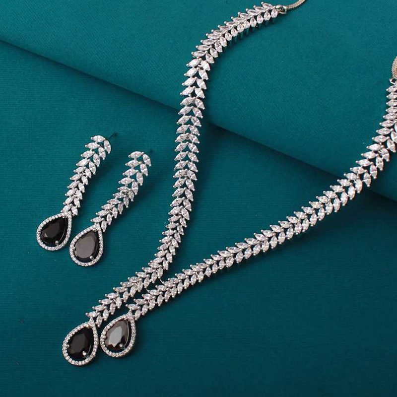 Royal Stone & Silver-Toned AD Necklace Set for Women | Royal AD Jewellery Set